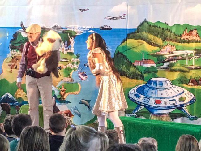 Am 21.03.2019 fand die Theateraufführung „Das Freundschaftsband“ für unsere Schüler und Gastschüler statt. Reporter Pfiffig und die Außerirdische Galaxia begeben sich auf die Suche nach dem besagten Band, mit dem man Zank, Hass und Streit besiegen kann.