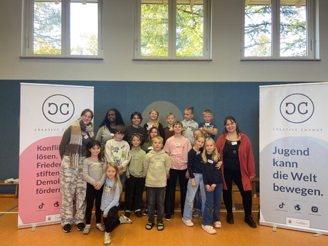 Vom 30.09. bis 02.10.2025 besuchten uns 4 junge Studentinnen des Vereins „Creative Change“ aus Frankfurt am Main. In Theaterform wurden verschiedene Szenarien zu Themen wie bspw. „Mobbing“ und „Integration neuer Schüler“ thematisiert. Alle Schülerinnen und Schüler wurden in das Theaterspiel mit einbezogen. Die Kinder waren von der Art und Weise der Themenumsetzung angetan. Auch im…