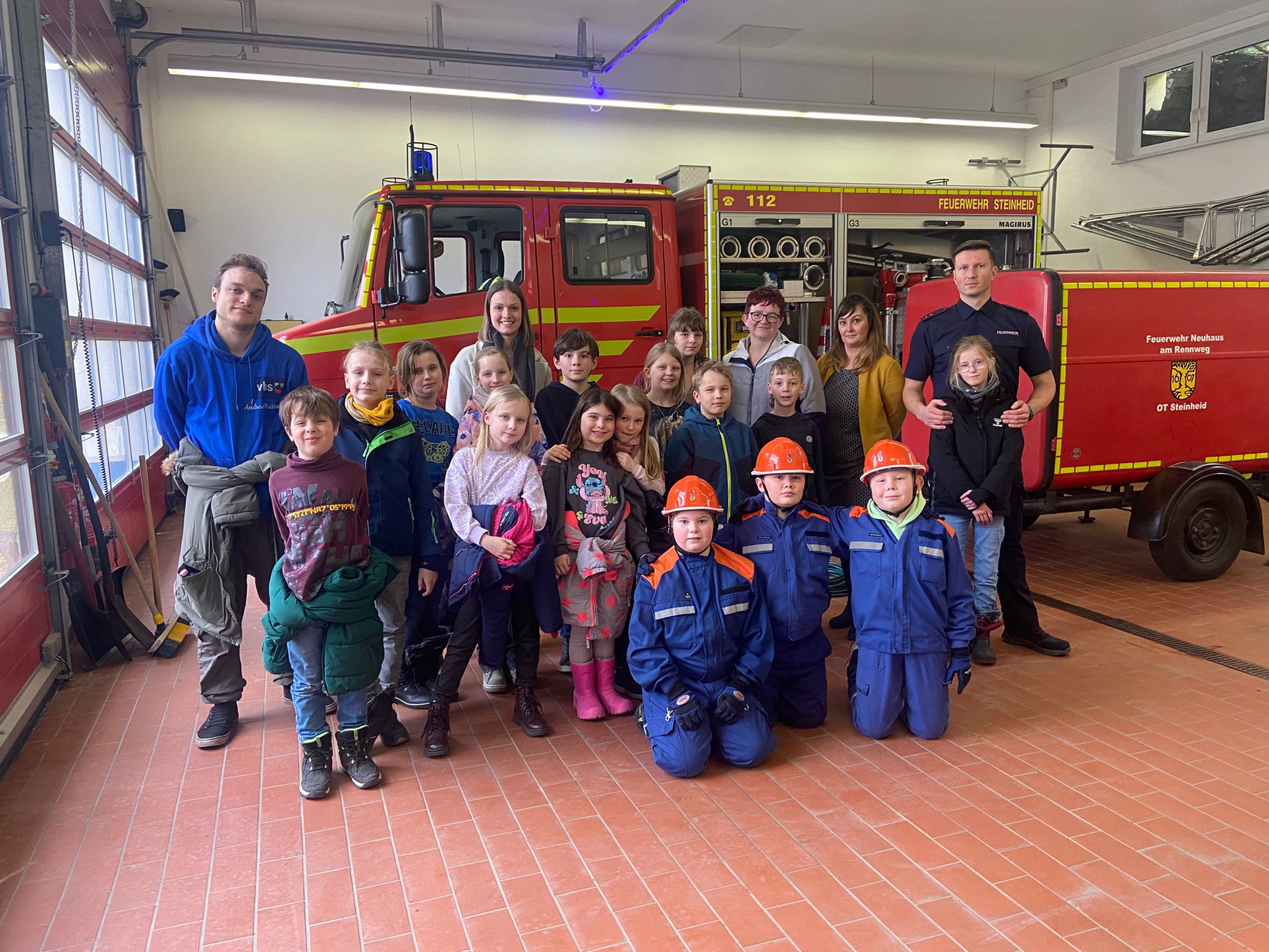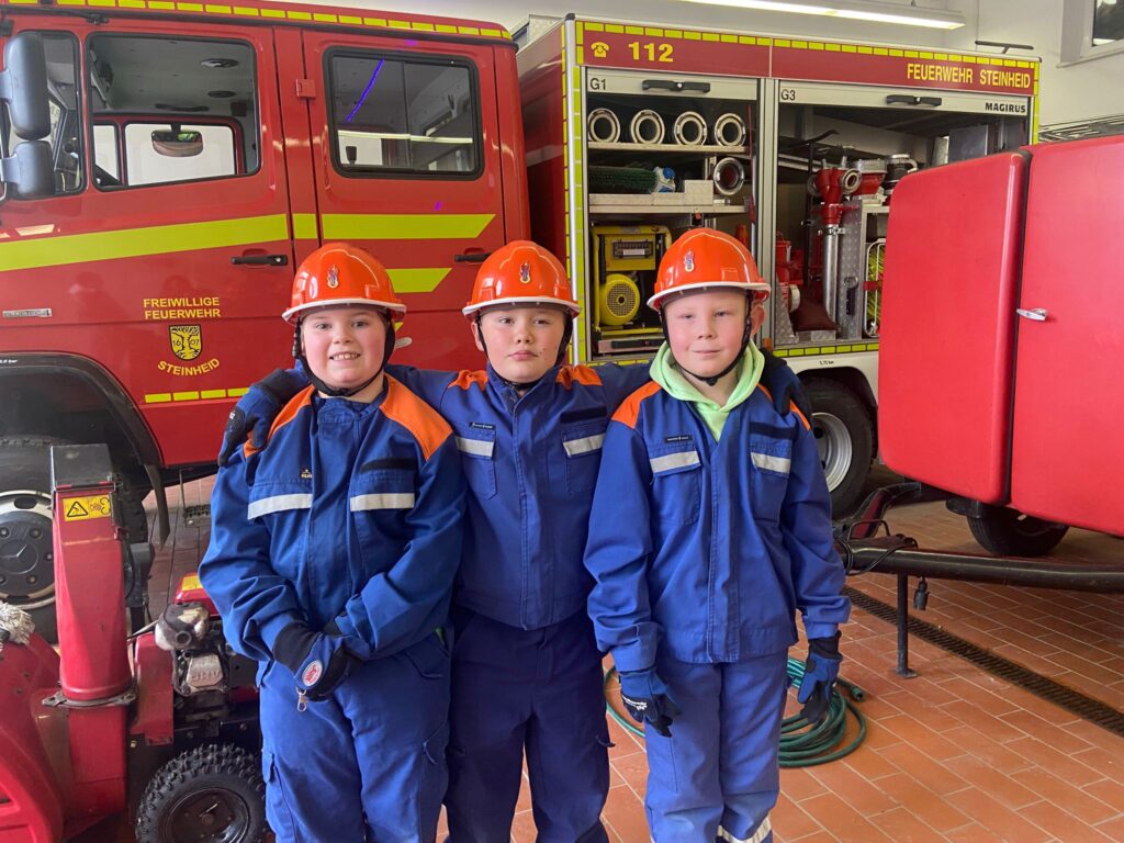 3 Steinheider Grundschüler, die bei der Jugendfeuerwehr im Einsatz sind.