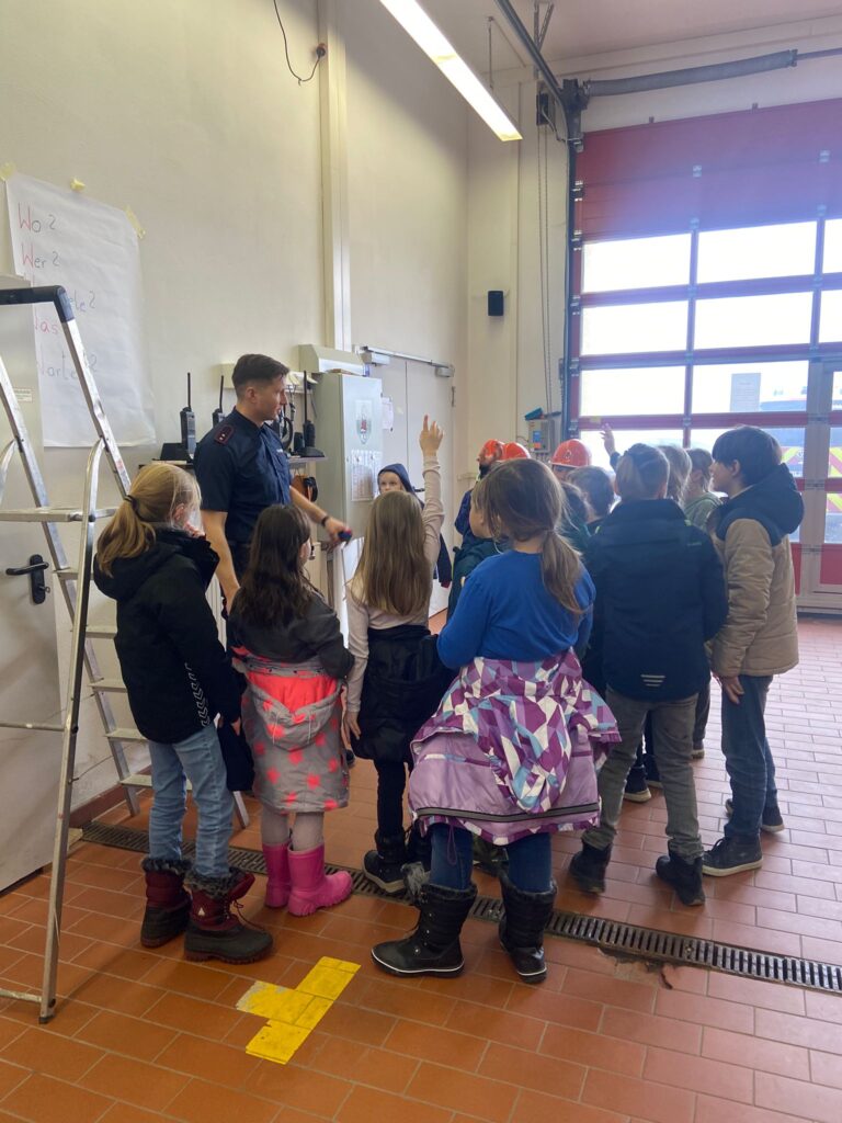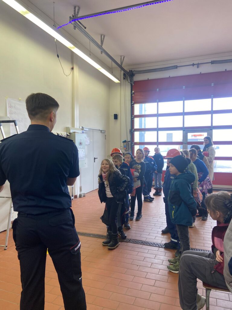 Am heutigen Donnerstag, den 26.2.2026 machte sich die Klasse 3a auf und besuchte die Freiwillige Feuerwehr Steinheid. Beim „Lernen an einem anderen Ort“ wurden die Drittklässler sowie das Personal herzlich vom Berufsfeuerwehrmann Thomas Waitz begrüßt. Die Kinder lernten zahlreiche nützliche Dinge, unter anderem die Kleidung, die Ausrüstung aber auch, wie man sich beim Absetzen eines Notrufes bei der Leitstelle richtig meldet (die 5 „W-Fragen“). Ein Schüler durfte, in Absprache, einen echten Notruf absetzen. Weiterhin wurden den Schülerinnen und Schülern erklärt, wie ein Brand entsteht (auch das „Verbrennungsdreieck“ genannt). Anschließend wurde den Kindern ein Löschfahrzeug mit all seinen Ausstattungen präsentiert.
