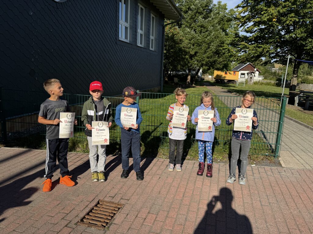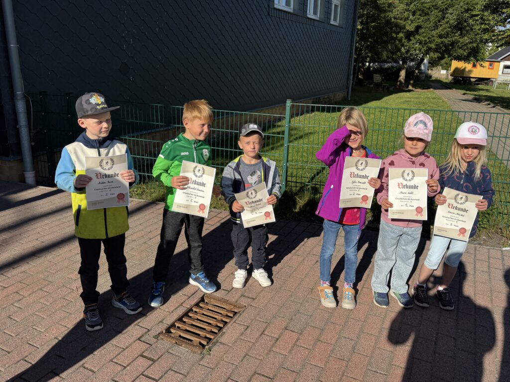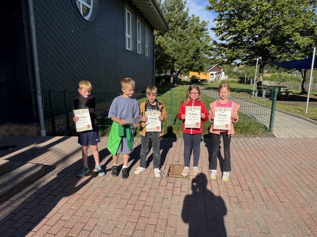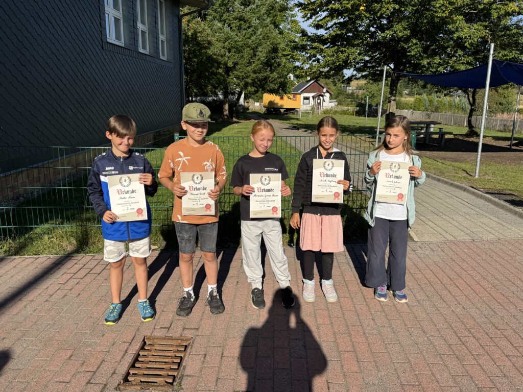 Am Donnerstag, den 04.09.2025 fand der alljährliche Schulcrosslauf statt. Angepasst an das Leistungsvermögen, rannten die Jungen und Mädchen der Klassenstufe 1: 600 m, Klassenstufe 2 und 3: 800 m und Klassenstufe 4: 1000 m. Die Schülerinnen und Schüler legten diese Strecken entlang des nahegelegenen Waldes zurück. In der darauf folgenden Woche fand auf dem Schulhof der Grundschule die Siegerehrung aller Klassenstufen statt. Die jeweils Erst- bis Drittplatzierten Kinder nehmen am 18.09.2025 am Kreiscrosslauf in Neuhaus am Rennweg teil. Wir drücken an dieser Stelle allen Teilnehmern die Daumen.