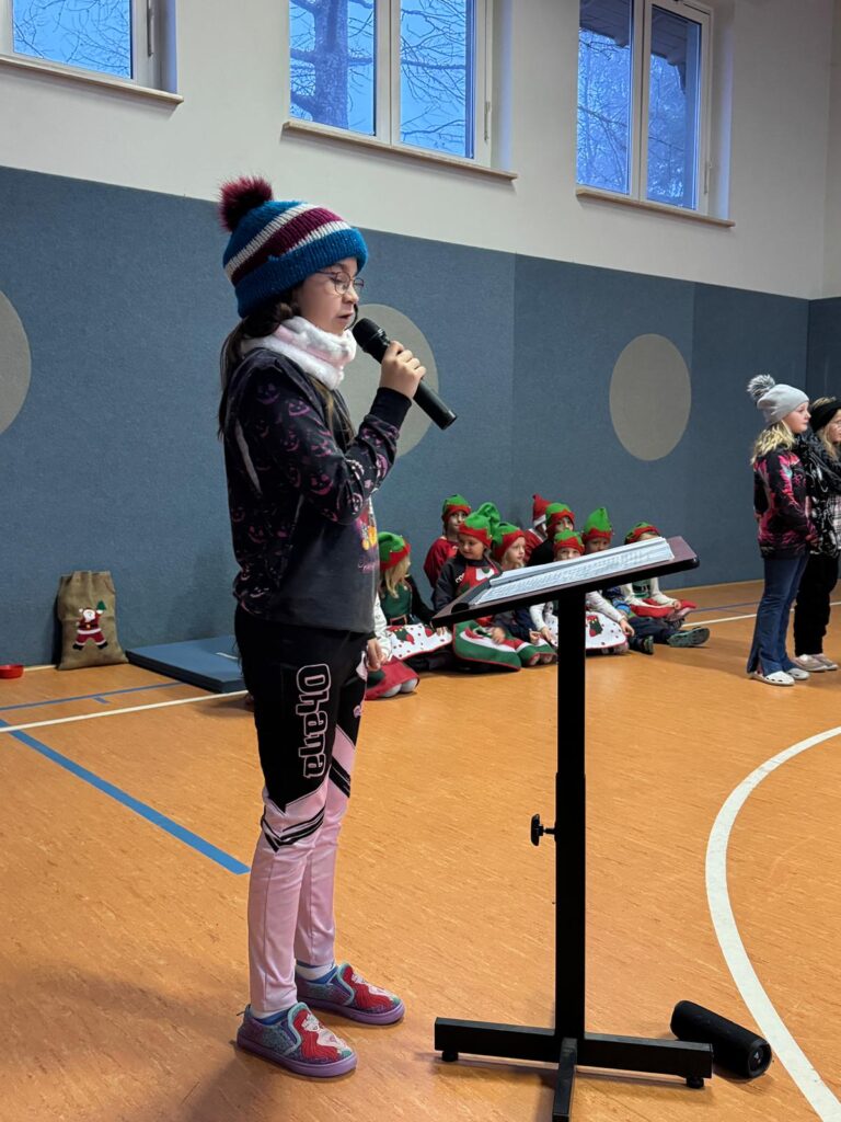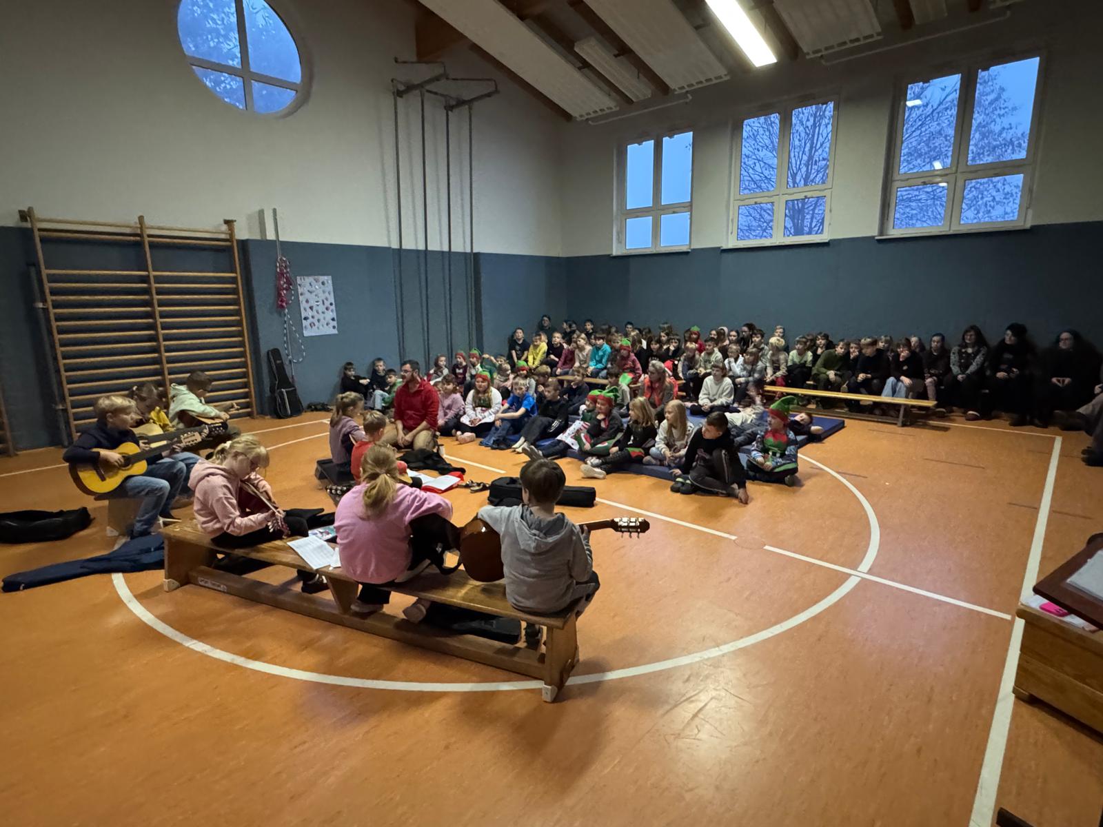 Am Donnerstag, dem 18.12.2025 präsentierten die Gitarrengruppen unserer Arbeitsgemeinschaft bei einer Schulversammlung ihr Können. Sie studierten in den AG-Stunden mit ihrem Gitarrenlehrer Fabian Frank instrumentale Weihnachtslieder ein, die den Klassenstufen zwei bis vier dargeboten wurden. Anschließend gab es noch einen Auftritt der Bühnenzwerge, die von Bianca Siegel und Julia Dose geleitet werden.