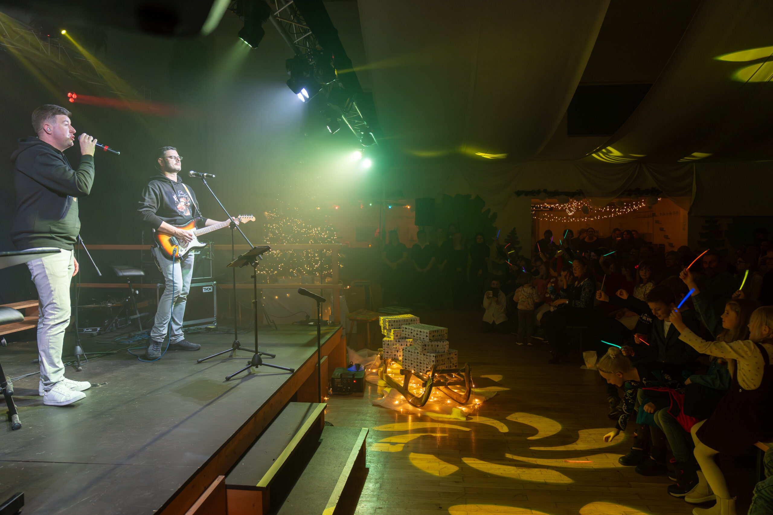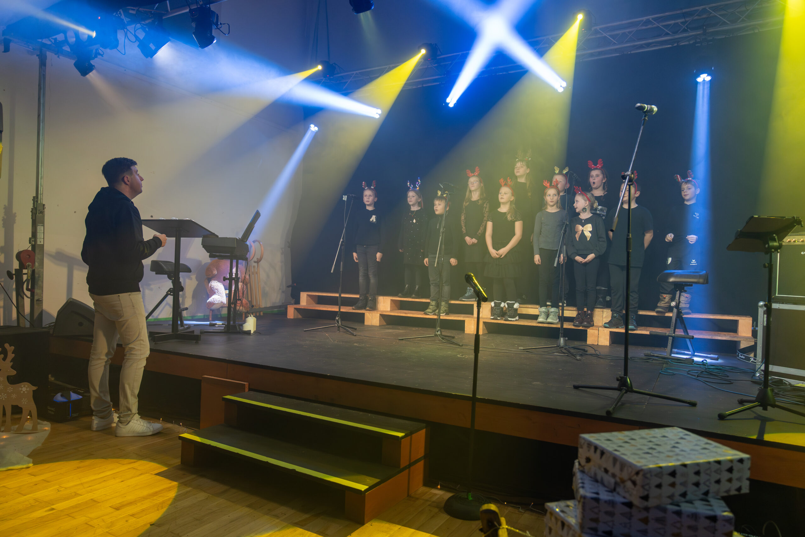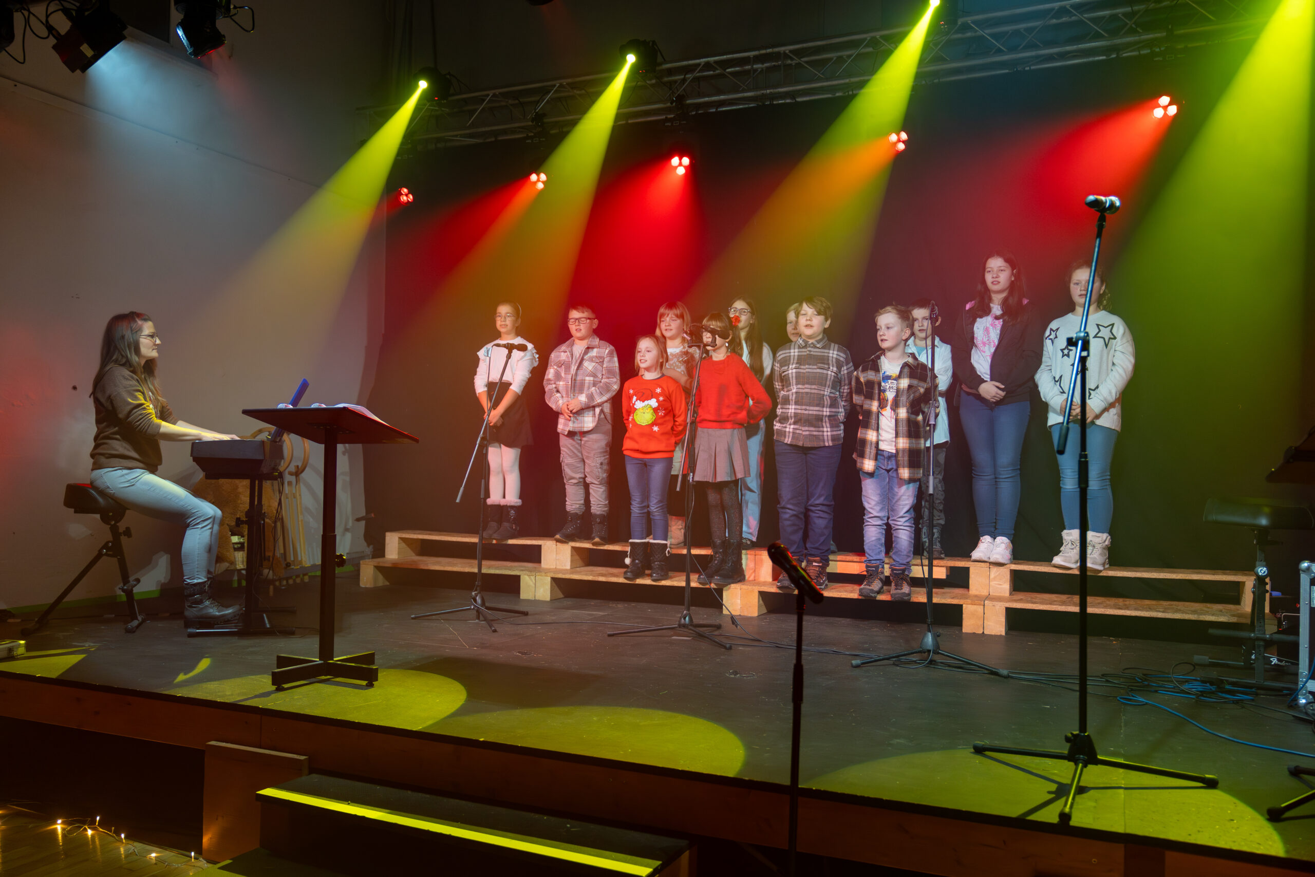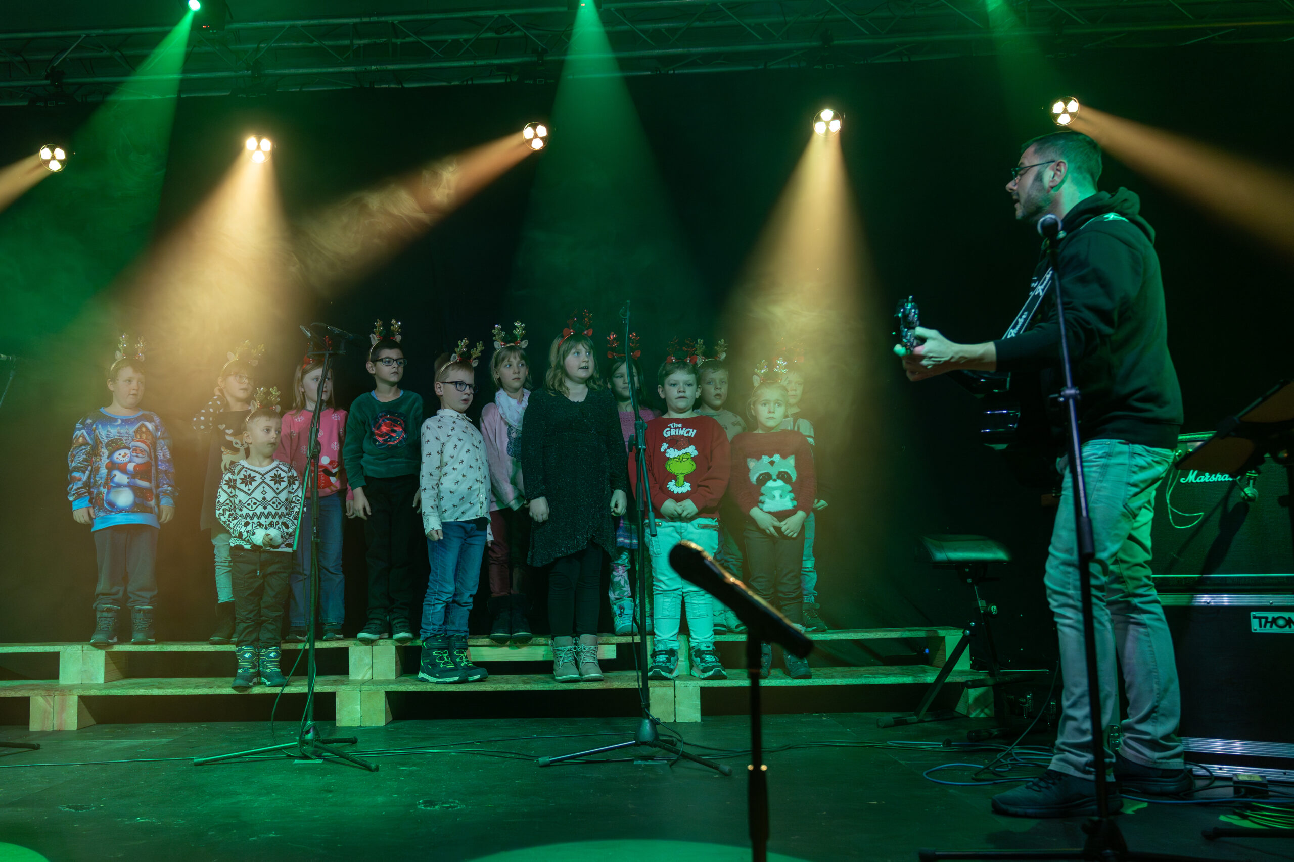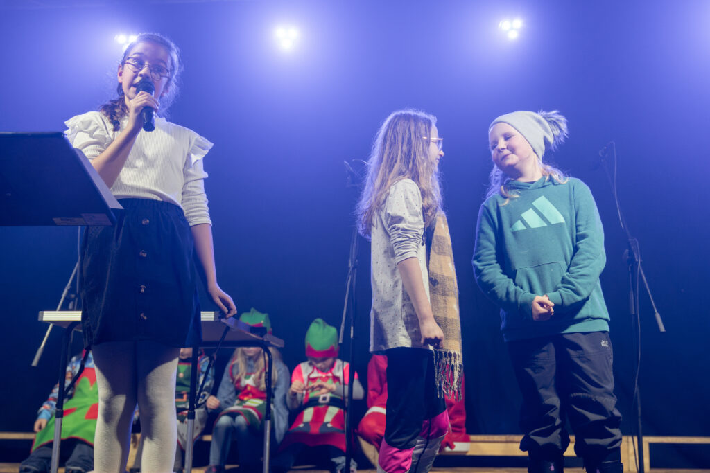 Am 9.12.2025 fand in der Mehrzweckhalle am Markt in Steinheid das erste von zwei Weihnachtskonzerten unserer Grundschule statt. Alle Lehrer, Erzieher und Schulbegleiter sowie das technische Personal waren bei der Planung und Umsetzung gefordert, um mit den Kindern ein Programm auf die Beine zu stellen, das wieder ein Mal seines Gleichen sucht. Alle Klassen haben fleißig geübt, geprobt und improvisiert. Unter anderem gab es Gedichte, Lieder, Tänze und Theateraufführungen. Unsere Grundschule ist nicht nur eine Umweltschule sondern auch eine zertifizierte musikalische Grundschule. Um dieser Zertifizierung gerecht zu werden, führten die Lehrer und Erzieher einen Tanz auf, deren Choreografie die Kollegin Jenni Räder entwickelte. Durch das Programm führten die beiden Viertklässler Leni und Alfons.